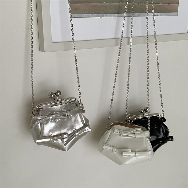 Korean version 2024 new small handheld purse ins style cute chain crossbody bag mini bow bag