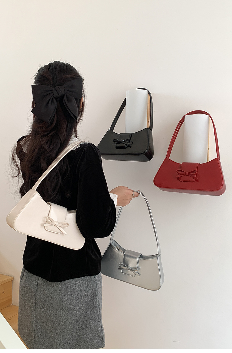New high-level bow cylinder handbag female niche soft PU leather single shoulder hand bag simple silver bag